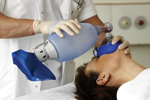 توجه داشته باشید که با یک دست کیسه ماسک و با دست دیگر باید ماسک را بر روی صورت و همچنین پوزیشن دادن به سر بیمار مورد استفاده قرار گیرد.